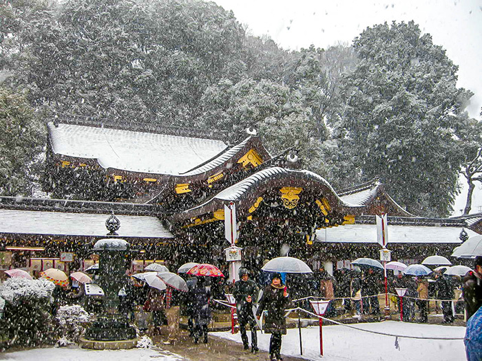 快晴のお正月も多いですが、近年は雪の中の初詣になることもありますよね。