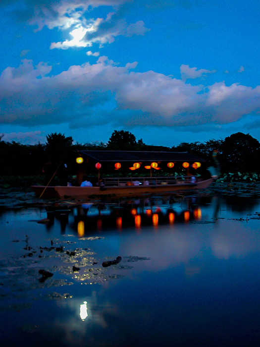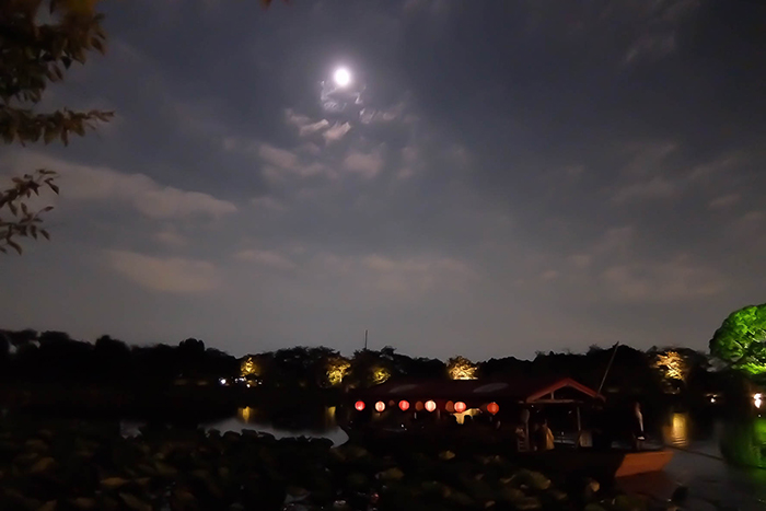 船上から、月夜の水面に映る月明かりを楽しむ「観月祭」です。