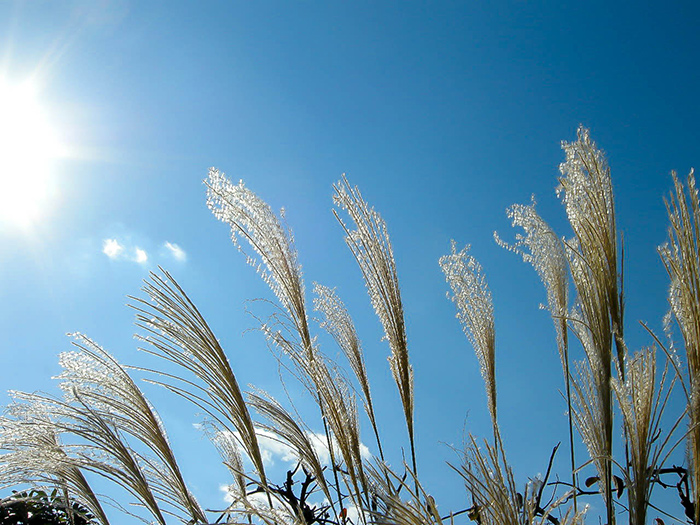 鈴虫の音色にススキがなびきます。