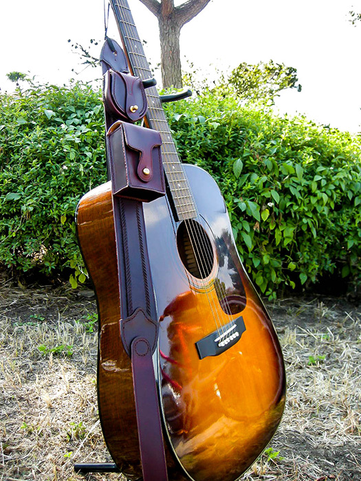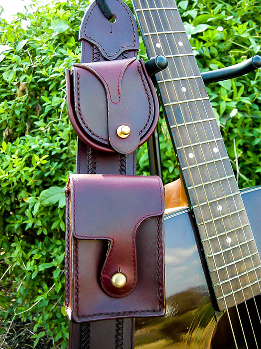 ギターストラップにふたつのポケットを付けました。
