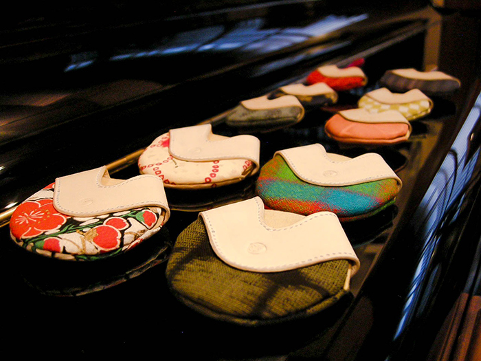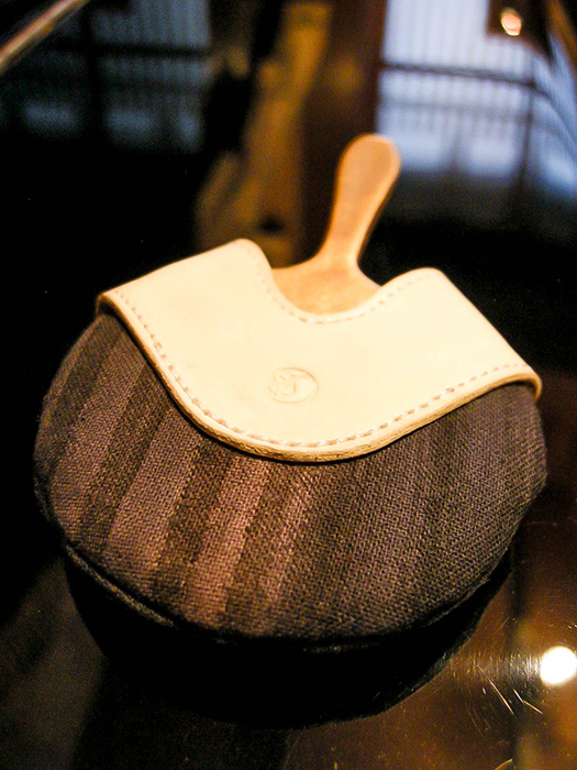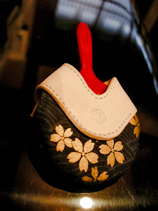 祇園町で仕込みから半だら、舞妓、芸妓として生きた人生の証としてヌメ革の取っ手に歴史が刻まれていきます。