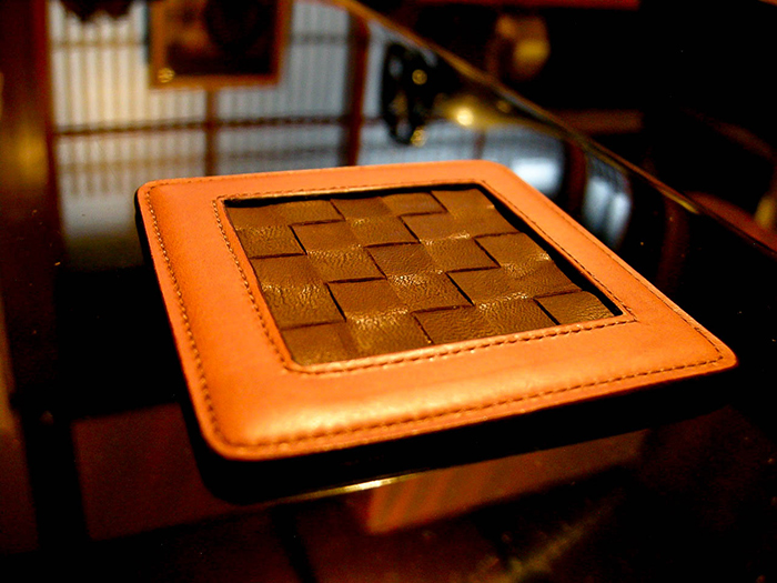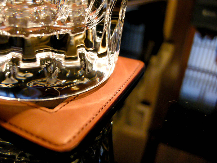 そんなバーカウンターに革という素材はとても適していると思い、「ドレスワイン」と「グラスマット」を制作しました。